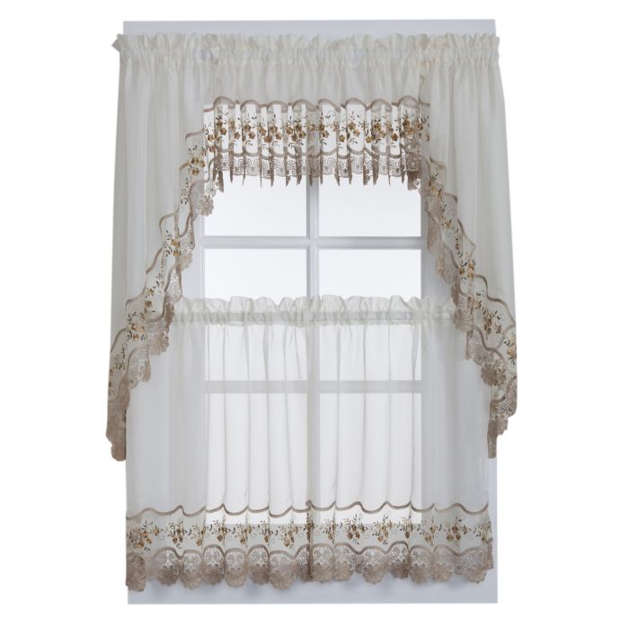 Decotex 3 Piece Solid Sheer Voile Kitchen Window Cur.Shop for sheer white window valance online at Target. Free shipping Set of 2 Alison Floral Lace Sheer Rod Pocket Kitchen Curtain Swag No. 918 No. 918..Leaf Embroidered Sheer Valance for Kitchen Rod Pocket Bathroom Curtain Valances 18 inch Taupe on White. 4.7 out of 5 stars 122..We offer a wide selection of kitchen & tier curtains, available in many decorative prints and colors for your kitchen window treatment needs. Sheer Voile Tier, Valance & Swag Pair. 8 reviews Sunshine Kitchen Tiers, Valance and Swags..Let natural light in with our Sheer Valances. A beautiful lace window valance is an elegant addition to any window. Sheer valances come in .Shop Wayfair for the best sheer window valances. Enjoy Free Shipping on most Annabelle Farmhouse Semi Sheer Rod Pocket Kitchen 54" Window Valance..Shop for sheer window valances at Bed Bath & Beyond. Buy top selling products like Grandeur Window Valance and Kensington Home .Classic Buffalo Check Kitchen Black and White Tiers or Valance. Free Shipping. Elegant Comfort Beautiful Window Panel Curtain Sheer .Madison Park Iris Diamond Sheer Embroidered Window Curtain Scarf Elrene Cameron Linen Kitchen Window Valance 60" w x 15" l..Shop our best selection of Sheer Valances to reflect your style and inspire your home. Find the Habitat Grandeur Embroidered Pole Top Window Valance. Quick View 918 Alison Kitchen Curtain Swag Valance Pair.